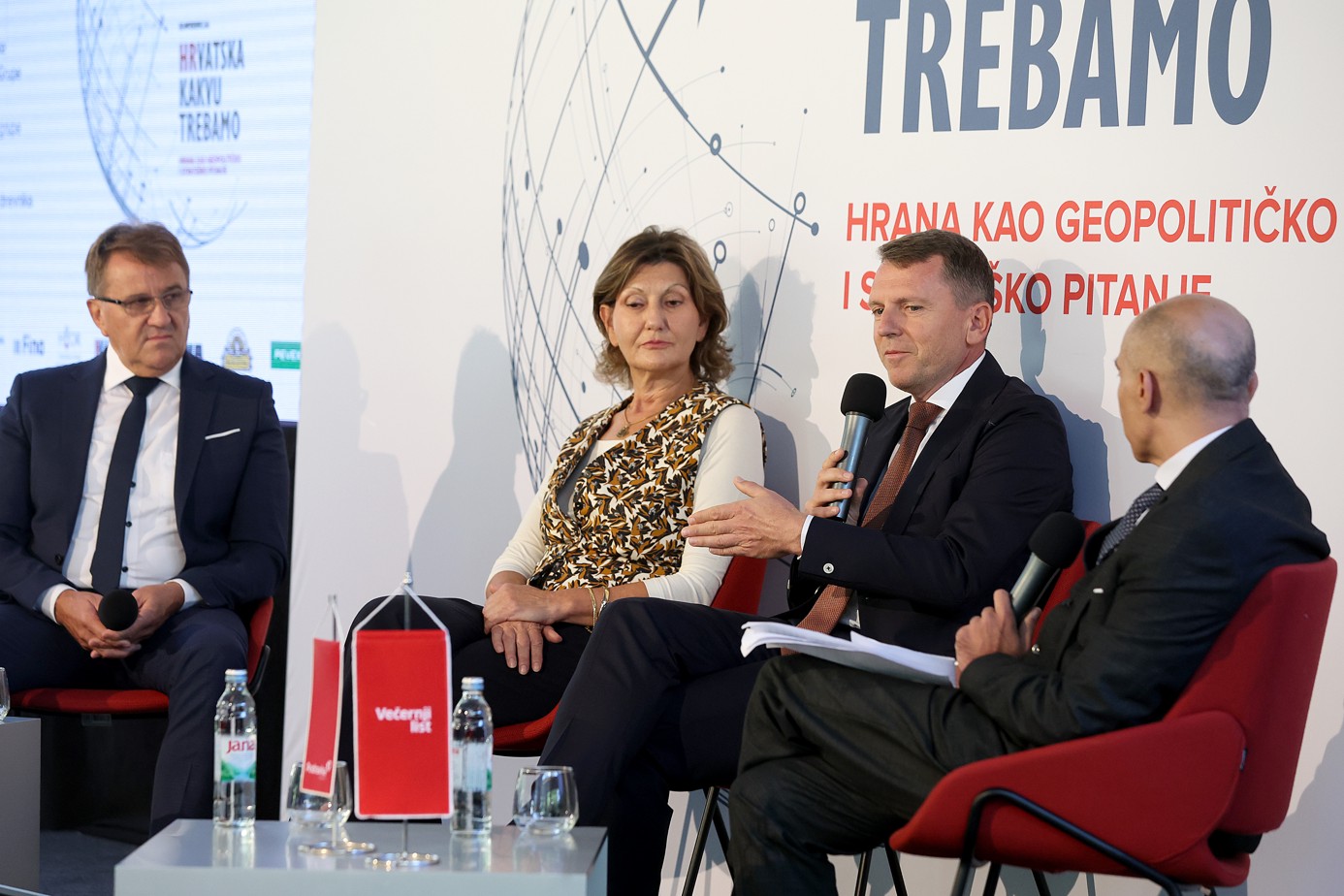 There was a panel discussion on food as a geopolitical and strategic issue, with Mr. Napast The event was attended by Martina Dalić, CEO of Podravka, Emil Tedeschi, CEO of Atlantic Group, and Mirko Ervačić, director of Osatina Group. They discussed whether Croatia can take advantage of its favorable geographical position and climatic environment to reduce dependency on imports in the food sector, increase productivity, and become more competitive at the EU level.