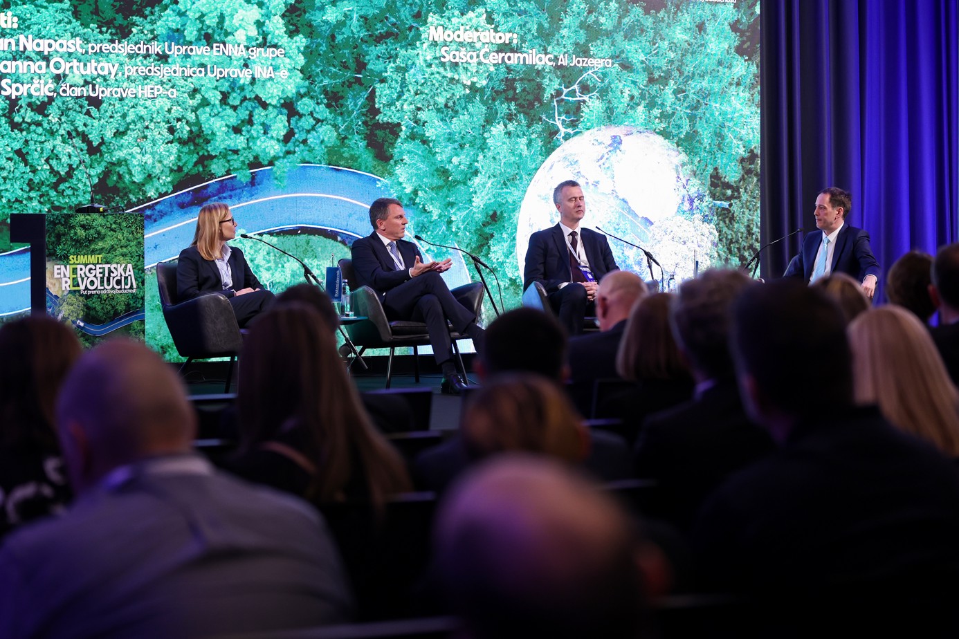 Boštjan Napast took part in a panel discussion titled "Leaders of the Energy Industry: Guidelines for the Future" alongside Zsuzsanna Ortutay, president of the management board of INA, and Petar Sprčić, management board member of HEP. They discussed the future directions of energy sector development and investments in green technologies.