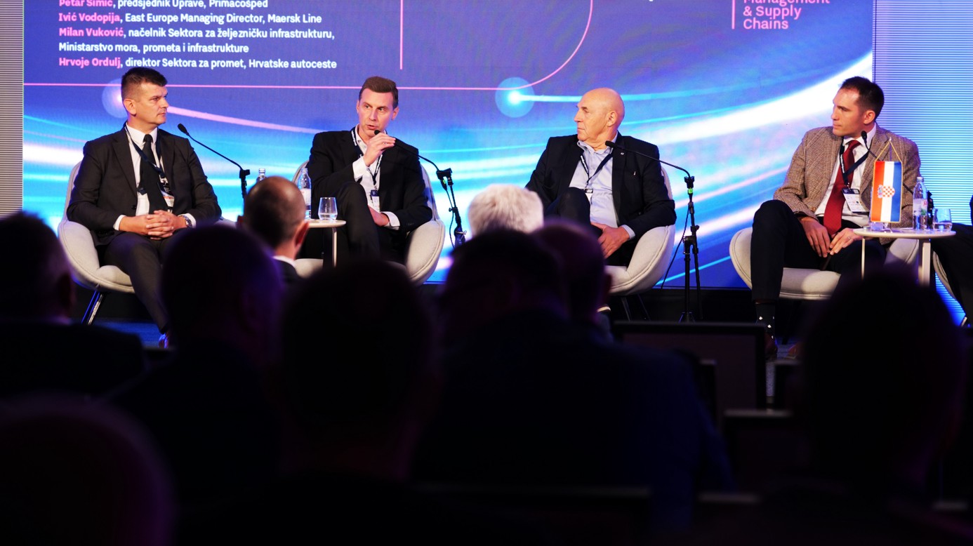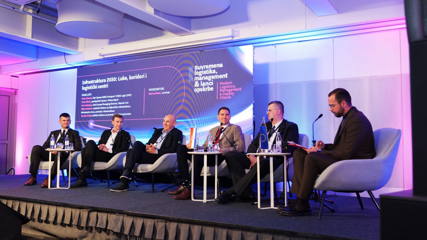 On the second day of the conference, Petar Glavaš took part in a panel discussion on transport infrastructure development until 2030, as well as the development of ports, corridors, and logistics centers, and public and private investments. Alongside Glavaš, the panel included Milan Vuković from the Railway Infrastructure Directorate at the Ministry of the Sea, Transport, and Infrastructure, Petar Šimić, CEO of Primacošped, Ivić Vodopija, Director for Eastern Europe at Maersk Line, and Hrvoje Ordulj from Hrvatske autoceste.