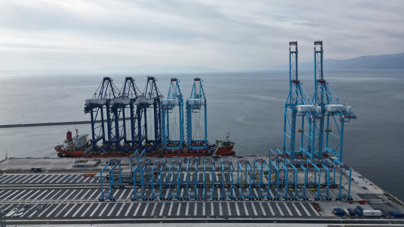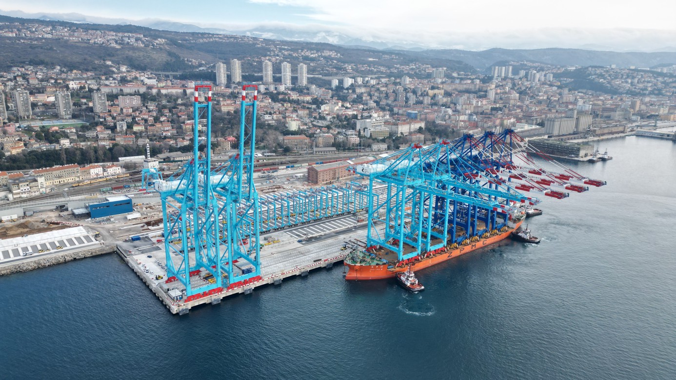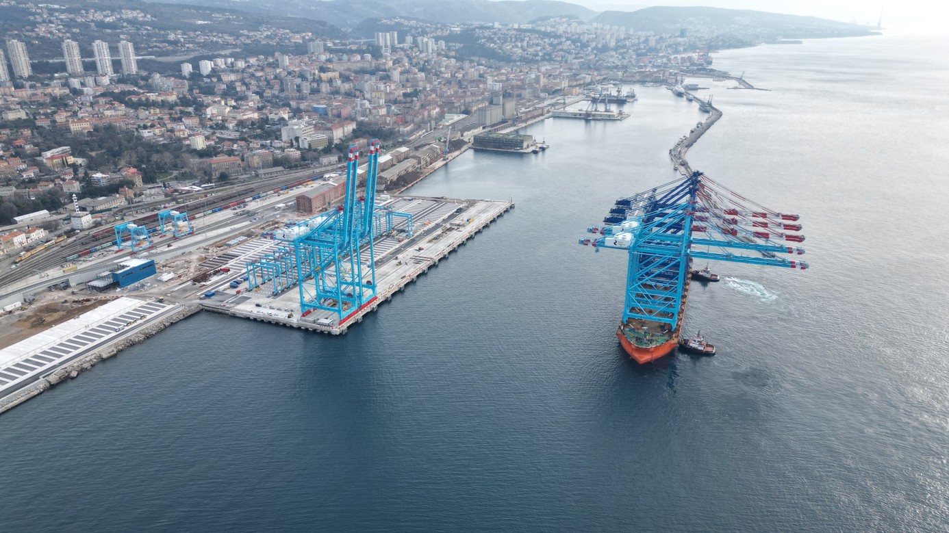 Rijeka, 17 February 2025 – Exactly four months after the delivery of the first two STS cranes, the remaining two STS (ship-to-shore) cranes arrived at the Rijeka Gateway terminal yesterday, completing the key equipment at the terminal, which is expected to open later this year.