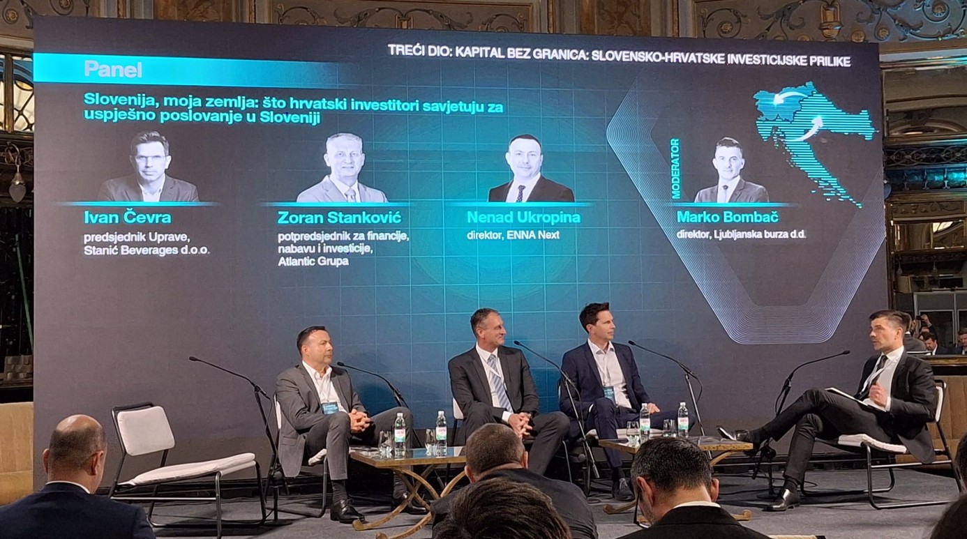 Nenad Ukropina sudjelovao je u panel raspravi o iskustvima hrvatskih poduzeća koja posluju u Sloveniji. Uz njega, panelisti su bili Zoran Stanković, potpredsjednik za financije, nabavu i investicije iz Atlantic Grupe te Ivan Čevra, predsjednik Uprave Stanić Beverages. Moderator panela bio je Marko Bombač, direktor Ljubljanske burze.